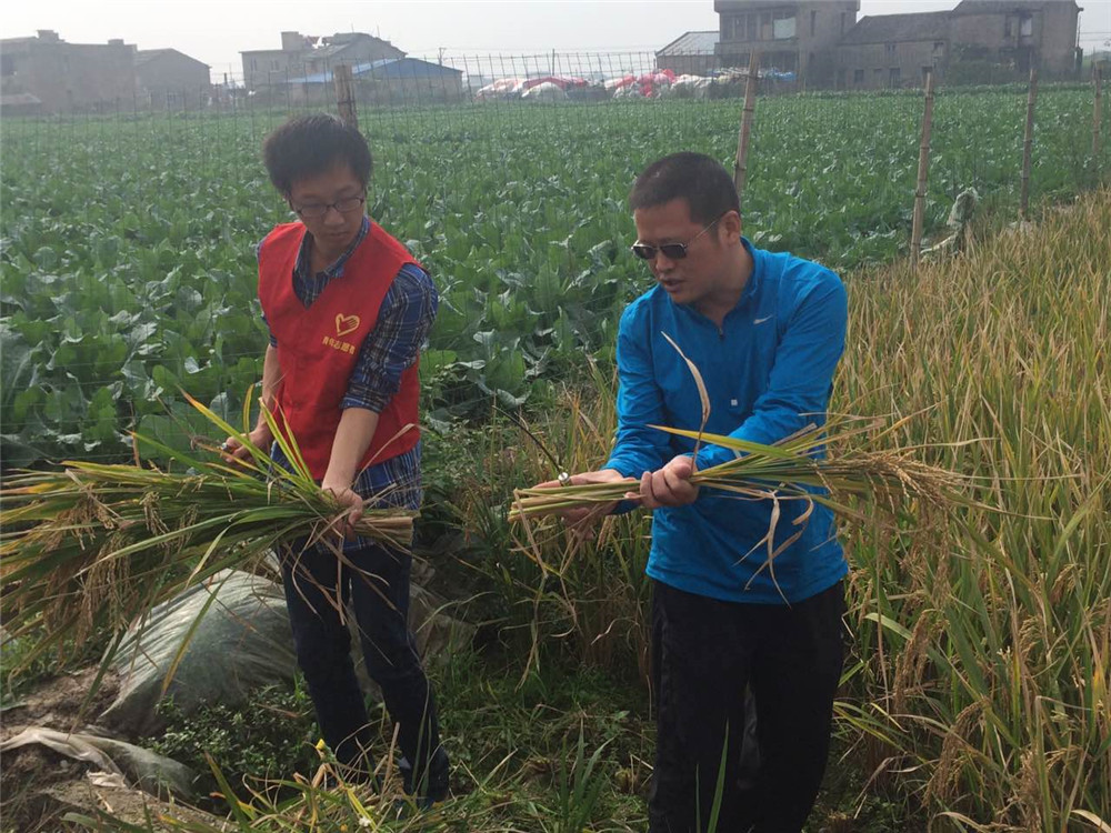1、实践知农,奠定服务基础青年志愿者以文化礼堂作为了解永兴街道农村农业现状的切入点,知晓永兴农村农业的基本情况。安排青年志愿者参与秋收之中,让本地的老农教导他们使用镰刀进行收割稻谷。之后文化礼堂利用PPT展示,数据说明人工与机械收割效率对比,让青年志愿者知道知识对农业的重要性,鼓励并期待青年志愿者为农村、农业带来新面貌。