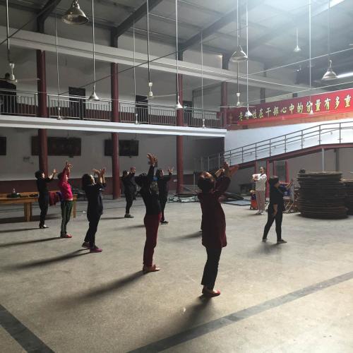 永中街道龙锦社区在文化礼堂开展中老年人健身操活动