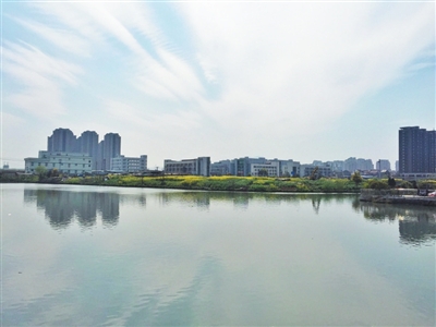 如今的下河滨河,已经是水清岸美。两岸的建筑垃圾、生活垃圾已经不见,河岸绿化带绿草青青,初春的依依杨柳低垂在清清水面之上。岸边的滨水公园三面环水、环境怡人,园内文化长廊蜿蜒曲折……
