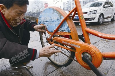 “有一次,我去借车时发现只剩下一辆故障车,检查了一下,原来只是链条掉了,很轻松就弄好了。”杨进成老人说,像这样的小故障每天应该有不少,如果都要等到管理中心统一拉走处理,无疑降低了使用率。