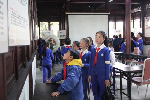 瞻仰仪式结束后,学生们还参观了革命烈士纪念馆和烈士陵园。过程中,学生们认真地阅读着烈士生平和温州地区抗战历史,小声而自豪地讨论着家乡的烈士英雄,一颗颗爱国的种子被深深地埋在了学生的心中。