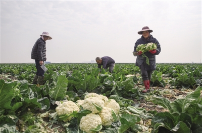 温州日报讯(陈蜜报道组苏静静) 早春三月,正是春耕备耕忙碌时。在龙湾区海滨围垦都市农业示范园区里,同样也是一派繁忙。匆匆穿梭于田间的工人们,正忙着采摘花椰菜。曾经一望无际的盐碱地,正在成为农户播种收获的“良田”。