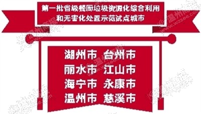 温州网讯近日,省发改委、财政厅、住建厅下发通知,确定包括温州在内的8个城市为第一批省级餐厨垃圾资源化综合利用和无害化处置示范试点城市,并确定了我市餐厨垃圾资源化综合利用行动计划目标:建议新增餐厨垃圾处理能力200吨/日。