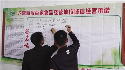 日前,龙湾海滨百家食品单位向社会公开承诺,签订食品安全承诺书,积极主动承担食品安全主体责任,遵守食安法,诚信做食品。