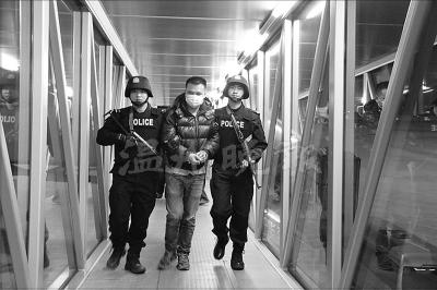 除了国际刑警组织公布的这批“红色通缉令”外,今年3月5日晚6点50分许,涉嫌合同诈骗出逃12年之久的犯罪嫌疑人赵某被我市警方引渡回国(如图)。这是我市公安历史上成功引渡回国的首名境外逃犯。