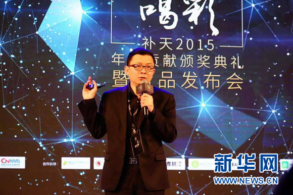 图为360副总裁谭晓生在发布会做演讲(新华网发)