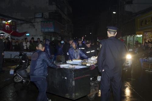 龙湾新闻网讯 4月8日晚18时,由蒲州街道牵头,联合区执法局、区公安局、交警三大队、区市监局、区农林局、蒲州派出所等单位,对蒲州街道辖区开展了一次无证食品摊贩和道路交通联合整治的行动。此次行动共出动人员140余人。