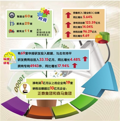 去年,我市百强企业的整体经济情况企稳向好,其中,净利润增长尤为抢眼。