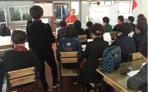 龙湾新闻网讯 “你是盛开的牡丹,回眸一笑不觉惊动天下”,龙东村文化礼堂里传出悠扬的女声。4月7日下午,黄石山社区青青合唱团新学期第一节课在龙东村文化礼堂开课啦。来自温州城市大学蒋凤梅老师与瑶溪三小薛红丽老师一起合作,耐心的讲解宋祖英的“盛开的牡丹”,从简谱到识字,一字一句的进行教唱。三十几位中老年妇女学员聚精会神的听课,学员们在简谱中遇到不懂的乐理知识,及时的向老师提出问题,两位老师都给予耐心细致的解释,课堂气氛紧张活跃。一堂课下来,学员们初步掌握了歌曲的唱法、唱腔。