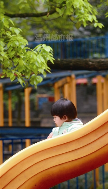 昨天下午,市区中山公园,一位小朋友在滑滑梯。