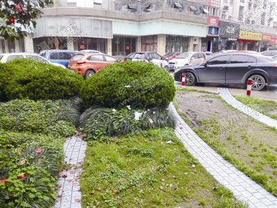 在市区车站大道,人行道上停满了车辆,有些私家车径直停在了绿化带上,虽然人行道两段都设置了防撞石柱,但依然拦不住一些违停的车主,有人甚至将绿化带的石墩搬离,好让自己的车子直接从机动车道开上人行道,而被碾压的绿化带自然都是破烂不堪。