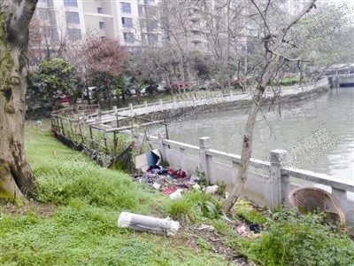 而在南浦路上的庆丰大桥边上,原属于南塘一组团的小花园却成了另一幅场景,原本好好的小区花园被人当成了“私家菜园”和垃圾场,居民们都觉得十分可惜。