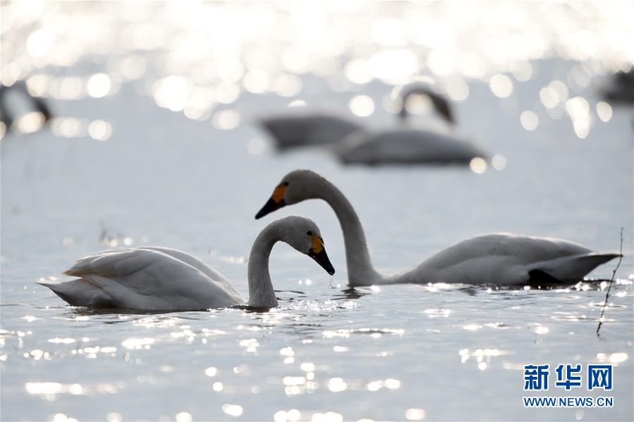 这是黑龙江挠力河国家级自然保护区附近水域的小天鹅(4月14日摄)。新华社记者王建威摄