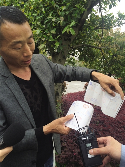 张师傅展示两张“等级评定”检测收费发票。叶凝碧摄