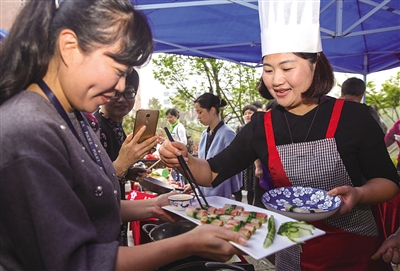 温州网讯 展示菜品的长桌上,摆放着各式各样的美味,菠萝牛柳、酿花菇、菜蔬卷等菜品造型各具亮点。昨天上午,龙湾区“健康美食烹饪大赛”在区图书馆大楼一楼举行,共有12支代表队参加这届“厨王争霸赛”。据悉,此次活动以健康美食烹饪为契机,培养健康的生活理念,倡导健康的生活方式,为健康龙湾建设贡献一份力量。杨豪 摄