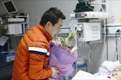 一件是一枚钻戒,他说,妻子只在结婚时戴过金戒指,从来没戴过钻戒,“我承诺过,等我们有钱了,一定要买个钻戒送她,但没想到她等不到那一天了。”前一天,李文辉去买了钻戒,但是鸳鸳手指已肿得戴不进去,他又匆忙托人改了尺寸;另一件是鲜花,他说,妻子很喜欢花,但他却没舍得给妻子买,而这是他给妻子买的第一束花。