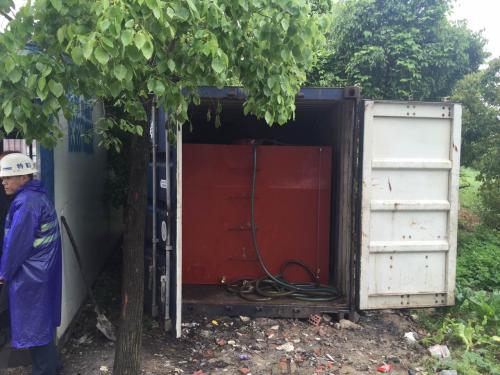 据调查,该加油点无任何证件,无防雷设施,属违法经营。执法人员在现场看到,该加油点将加油机设置在隐蔽的废弃的集装箱,一般人很难察觉,在离加油机不到两米的地方,停放着大型的油罐车。现场发着浓烈的柴油味,电线乱拉乱接且裸露着铜线,地面上烟头火柴随处可见,存在极大的安全隐患。执法人员当即责令责任人停止其违法行为且,并对该非法加油点予以查封,依法查处非法储存的柴油5吨。