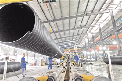 前天,在龙湾区煌盛集团有限公司车间内,工人正在忙着生产钢带管。近年,随着“五水共治”的持续深入和PPP项目如火如荼地展开,大批污水处理配套管网得到新建或升级改造,给我市管道企业带来了巨大商机。