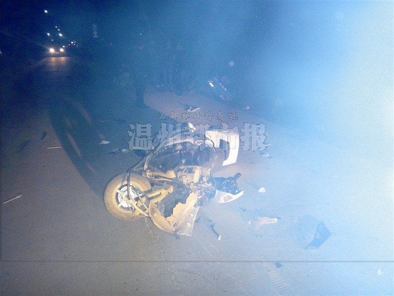 本月22日晚8时许,在永嘉县瓯北珠岙村往白水小学的路上,永嘉籍男子潘某驾驶的二轮摩托车追尾撞上了一辆电动三轮车。结果,三轮车司机受轻伤,潘某脸部、腿部等多处擦伤。