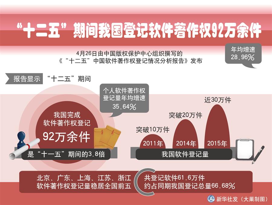 图表:“十二五”期间我国登记软件著作权92万余件新华社发大巢制图