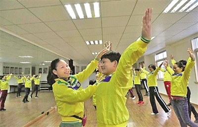 “一大大、二大大、三大大,转身举右手,对对,动作要有力……”