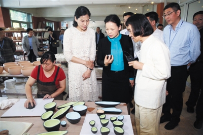 图为胡剑谨(中)一行考察瓯窑文化馆。杨豪摄