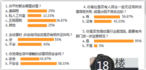 B、问卷调查近六成认为纹眉不安全超九成认为纹绣行业混乱