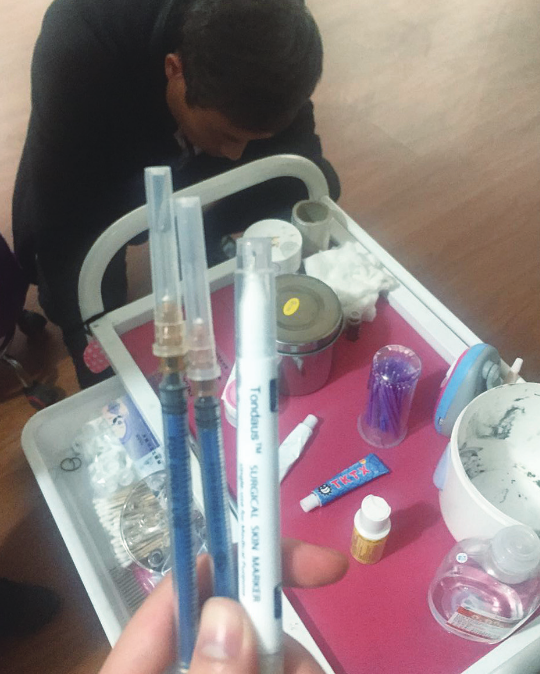 根据汤某的描述,记者发现,这些美容项目中,不少项目的操作过程,都需要用到麻药和针孔,会和人体皮肤发生直接接触。“纹眉就要用针孔把染料一点点涂到皮肤里才行,还有纹唇是一定会破皮的。”汤某说道。