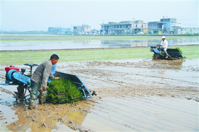 龙湾新闻网4月29日讯昨天,永兴街道五溪村王进良农场处(温州鑫丰农机专业合作社)举办早稻机插现场培训会。活动现场,来自全区各街道60余户水稻机插农户和种粮大户通过听取指导员详细讲解,并结合观摩五台水稻插秧机作业演示,对水稻插秧机的使用方法、优势和注意事项有了更深入的了解。借此机会,我区将以点带面,进一步推广水稻机械化插秧技术,预计在5月中旬前全面完成今年辖区内早稻种植任务。