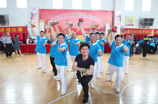时尚的服装、整齐划一的动作,让大家对这些花甲之年的老人刮目相看。市老体协常务副会长鲁岳告诉记者,龙湾老年健身舞男子球队去年曾代表温州夺得桂冠,6月将再次代表温州参加全省的老年人健身球比赛,10月将代表浙江参加在横店举办的全国老年人健身球比赛。龙湾区健身舞协会会长姜振扬说,2008年,龙湾老年健身舞男子球队正式组建,参加云南举办的全国老年人健身球比赛获得第二名。后来,多次代表温州参赛,多年荣获省第二名,去年首次超越老对手杭州富阳男队,拔得头筹。如今,年届古稀之年的他,依然活跃在老年人健身舞运动一线。龙湾老年健身舞男子球队队员年龄最小的52岁,最大的72岁。在这里,他们不仅收获了健康和快乐,还收获了友谊。