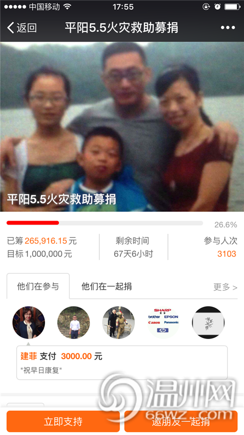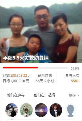 平阳2死3伤火灾需巨额治疗费 仅一天募款53万余元