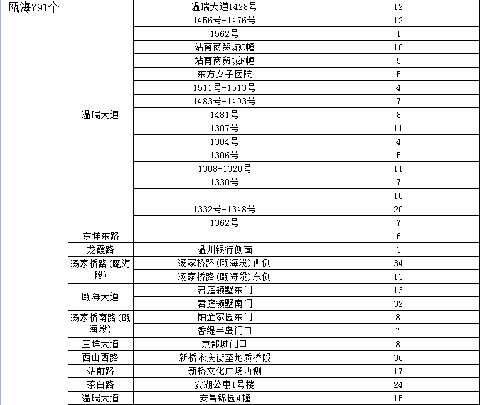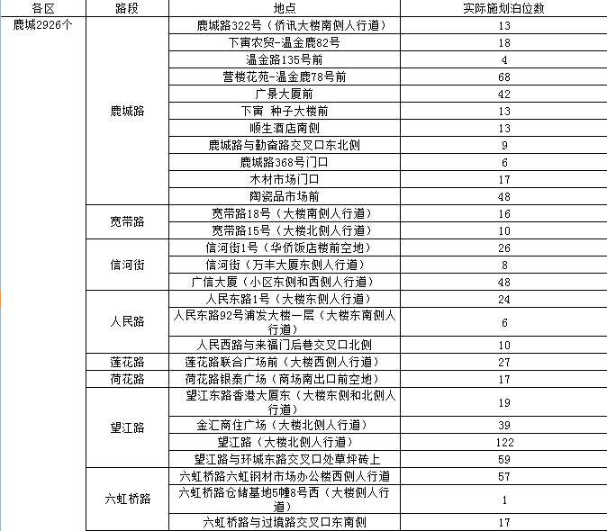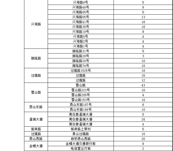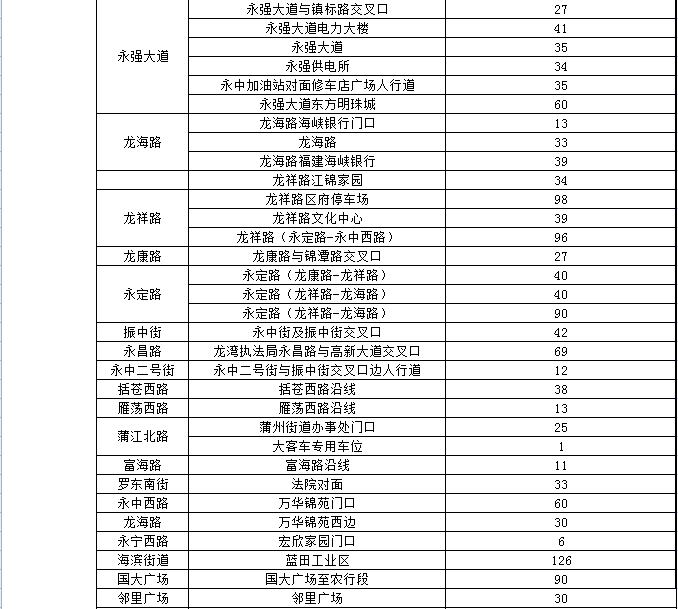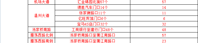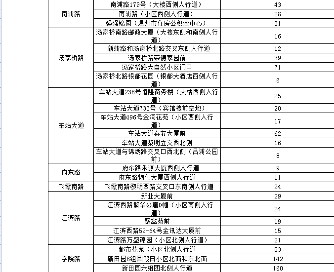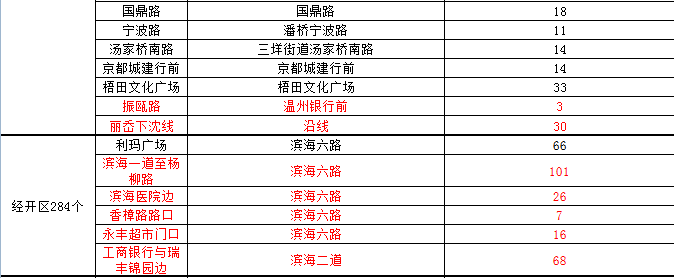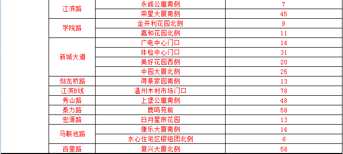 温州市区人行道停车泊位一览表(红色为今年新增泊位)