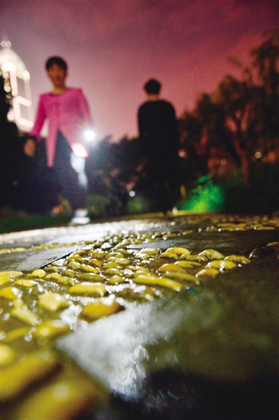 接到市民蔡先生提供的线索后,记者当天晚上就从杨府山公园的南大门进入公园,沿着总长1.6公里的大环园路绕行一圈。