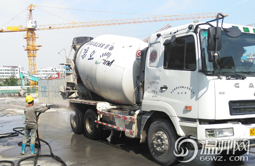 白天,市区建筑工地基本做到了车辆外出前冲洗
