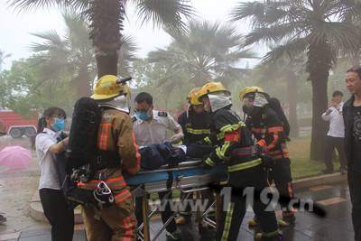 下午3点30分,随着警报的响起,学生们迅速躲在书桌或其他支撑物下,以书本、书包等遮头护眼就地避震,等待强震过后,学生们向着指定方向,有组织的向操场疏散。随后,本次演练还模拟了学生受困于因地震引发的火灾的场景。消防官兵迅速带队深入教学楼进行内攻灭火,并利用担架对被困人员进行救助。两分钟后将抢救人员送至120急救车进行抢救。演练最后,丁建华副区长作了总结讲话,对此次演练的成功组织给予充分肯定,并强调做好防震减灾工作的重要意义,要求学校在安全教育方面常抓不懈。