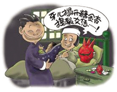 图中这句“恶魔之语”你能看得懂吗?其实是形容人笑得很开心。漫画来自本报图库