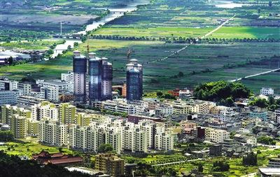 瓯海区丽岙街道鳞次栉比的新楼房和田园阡陌构成一道靓丽的新农村景色。杨冰杰摄