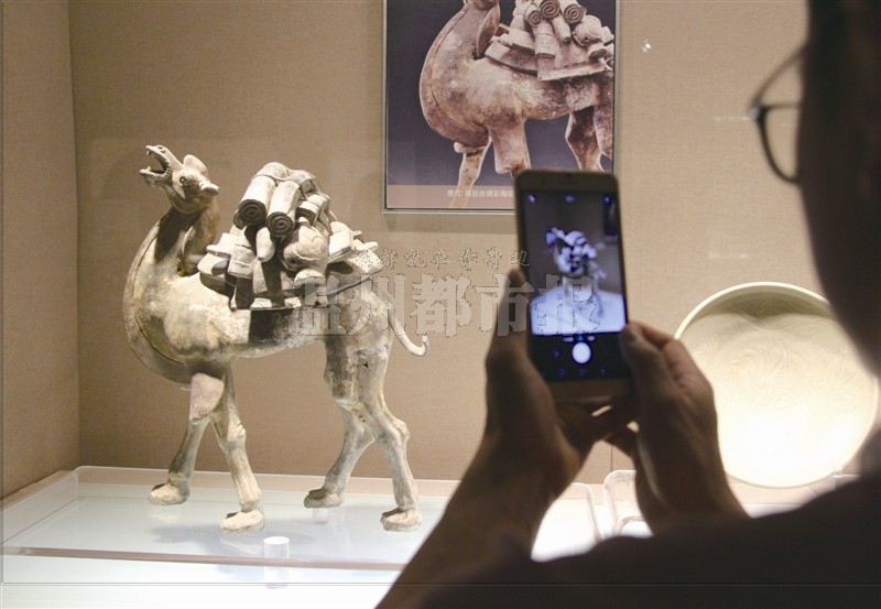 图为背驮丝绸彩陶骆驼俑。温都记者郑之越/摄