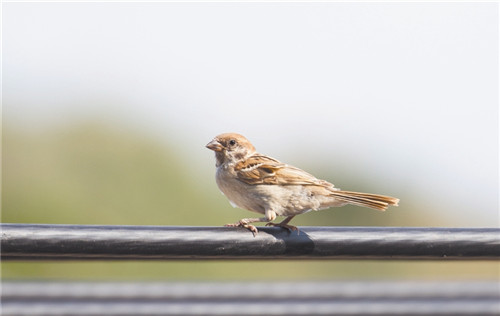 麻雀分类:雀形目雀科描述:体型略小(14厘米)的矮圆而活跃的麻雀。顶冠及颈背褐色,两性同色。成鸟上体近褐,下体皮黄灰色,颈背具完整的灰白色领环。与家麻雀及山麻雀的区别在脸颊具明显黑色斑点且喉部黑色较少。幼鸟似成鸟但色较黯淡,嘴基黄色。分布范围:欧洲、中东、中亚和东亚、喜马拉雅山脉及东南亚。习性:栖于有稀疏树木的地区、村庄及农田并为害农作物。在中国东部替代家麻雀作为城镇中的麻雀。
