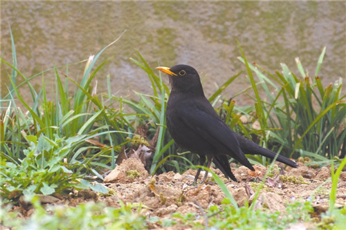 乌鸫(音同东)分类:雀形目鸫科描述:体型略大(29厘米)的全深色鸫。雄鸟全黑色,嘴橘黄,眼圈略浅,脚黑。雌鸟上体黑褐,下体深褐,嘴暗绿黄色至黑色。此鸟与所熟悉的乌鸫为同一种类。与灰翅鸫的区别在翼全深色。分布范围:欧亚大陆、北非、印度至中国。习性:于地面取食,静静地在树叶中翻找无脊椎动物、蠕虫,冬季也吃果实及浆果。