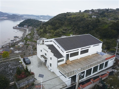 温州网讯台湾中国梦促进会与台湾101大楼设计团队在洞头半屏山投资海峡云村金岙101项目,携两岸百名青年设计师设计改造101幢石头屋。目前一期30幢石头房正在抓紧完成外观装修。6月份将完成60间民宿、30个同心会馆、30个台湾主题文创展馆建设,并开展试营业。图为旧屋改造成的半屏影剧院。