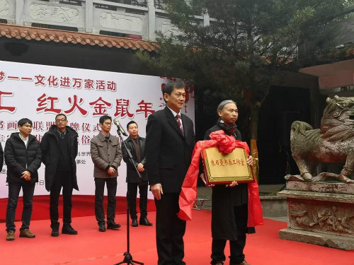 朱日曼先生是江西籍画家,旅居温州二十多年,专业从事中国花鸟画学术创作、研究,曾在龙湾博物馆举办个人画展,深受好评。温州外来书画家联盟是全国各地书画艺术爱好者在温州的社会团体,十多年来一直活跃在温州、龙湾艺术界,积极开展艺术交流、公益活动,为温州书画艺术注入新的艺术活力。今天在白水民俗博物馆开展挂牌、揭牌仪式,意在引导社会力量办文化,为龙湾注入更多的文化因素,丰富基层群众文化生活。
