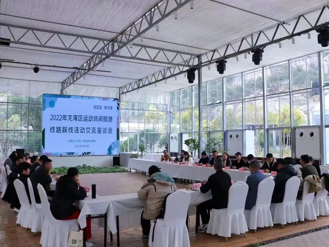 当日下午,参加踩线活动的嘉宾、龙湾区文化和广电旅游体育局主要负责人、龙湾区的宾馆酒店代表及相关涉旅企业负责人在东篱下生态休闲农庄召开了“2022年龙湾区运动休闲旅游线路踩线活动交流座谈会”。交流会上,与会嘉宾充分交流了此行感想,大家纷纷表示,本次踩线活动体验项目令人耳目一新,展现了龙湾旅游资源新潮有趣、富有底蕴、体验感强的独特性,适宜面向不同市场群体开发旅游产品,并就如何发展龙湾旅游事业、开发龙湾旅游产品、加强旅游行业互联互通积极建言献策。