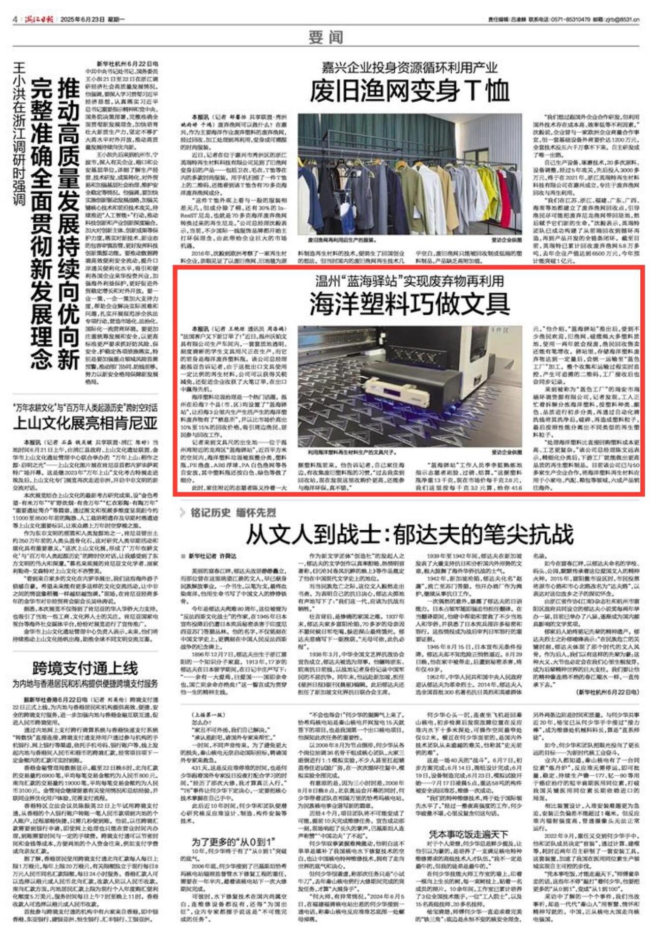 【外媒看龙湾】浙江日报 | 温州“蓝海驿站”实现废弃物再利用 海洋塑料巧做文具