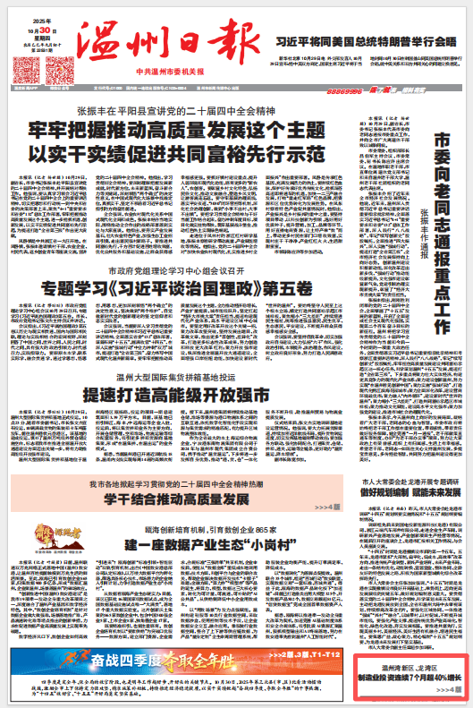 【外媒看龙湾】温州日报 | 连续7个月增速超40%,龙湾制造业投资“高位奔跑”靠什么?