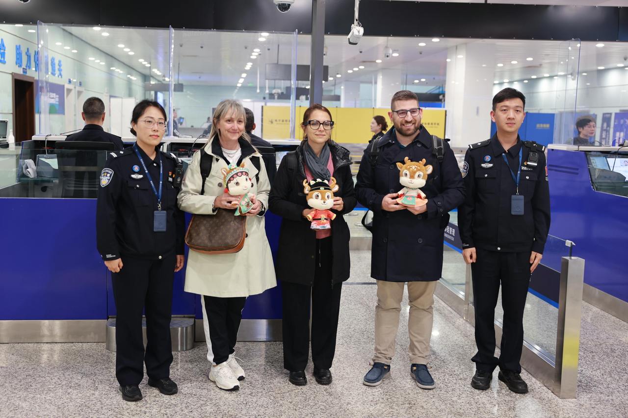 高效的通关体验配上暖心的细节,让外籍嘉宾们连连点赞。“我从未感受过这样暖心的服务!”一位随行旅客感慨道。更贴心的是,边检民警还特意为嘉宾们送上了园博会吉祥物玩偶,传递来自东道主的诚挚问候。
