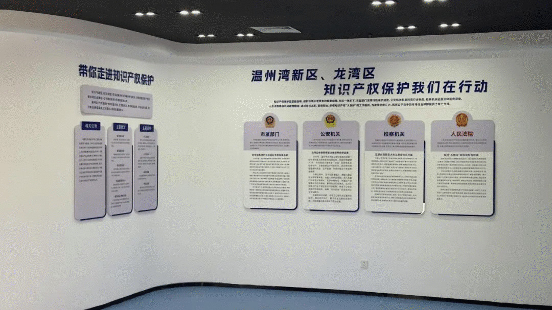 专利产品亮出来了,仿冒侵权怎么办?区市监局依托展馆常态化开展知识产权普法宣传和维权指导,馆内系统呈现了龙湾区市场监管、公安、检察、法院“四位一体”知识产权保护体系的建设成效。一个个真实执法案例摆在那里,既是警示,也是底气。