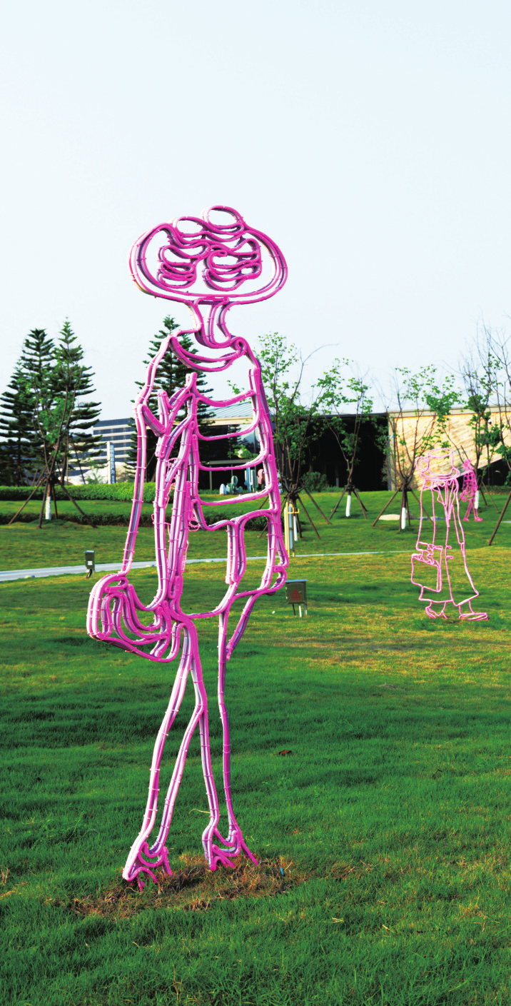 一个拥有雕塑基因,一个具备建筑美学。龙湾借园博会的东风,将这两个点位串联起来,又增添了钟秀园、寺前街、和合文化园三颗明珠。前不久,11件中外公共艺术作品盛装登场——充气装置、光影互动雕塑、城市家具等,形态各异,分布在公园草坪、桥面、水岸及眼谷的建筑周边,与原有的80余件雕塑遥相呼应,共同构成一幅可游可感的艺术图景。